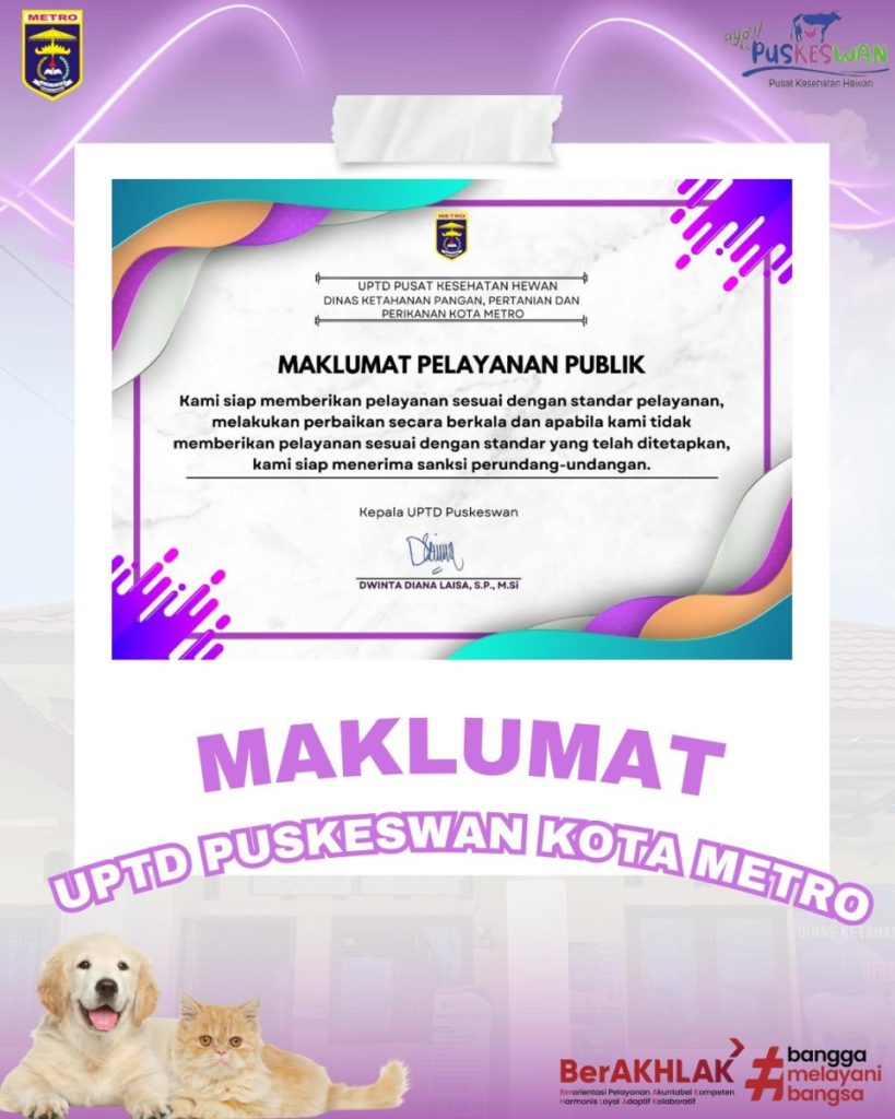 Maklumat Pelayanan UPTD Puskeswan Kota Metro